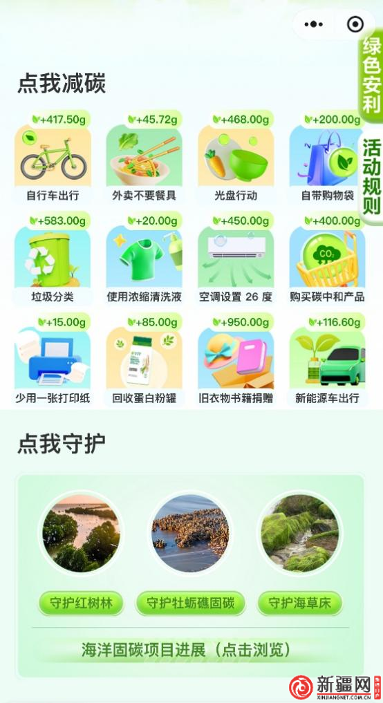 “安利個人碳賬本”小程序