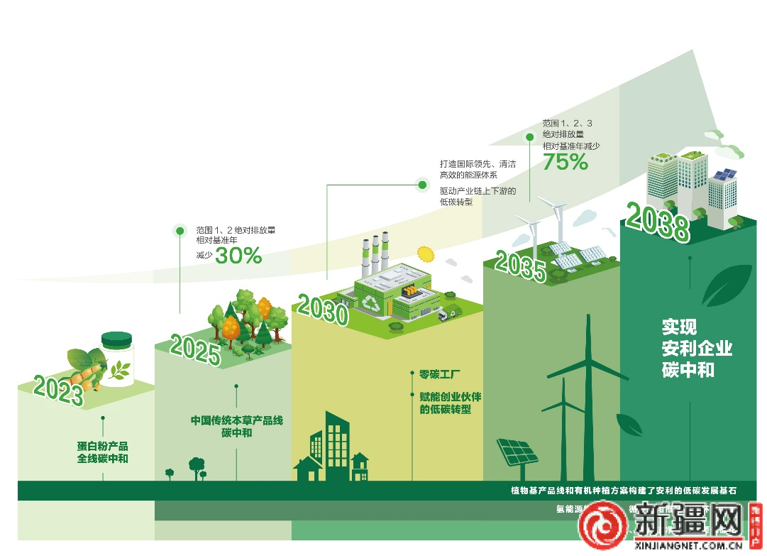 安利的實踐,正是這一觀點的有力注腳。早在2010年,安利基于詳實數(shù)據(jù)和科學(xué)規(guī)劃制定了清晰的碳中和路線圖:逐步實現(xiàn)核心產(chǎn)品線碳中和、2030年建成首家“零碳工廠”、2035年(相對基準(zhǔn)年)二氧化碳絕對排放量減少75%、2038年實現(xiàn)企業(yè)全面碳中和。
