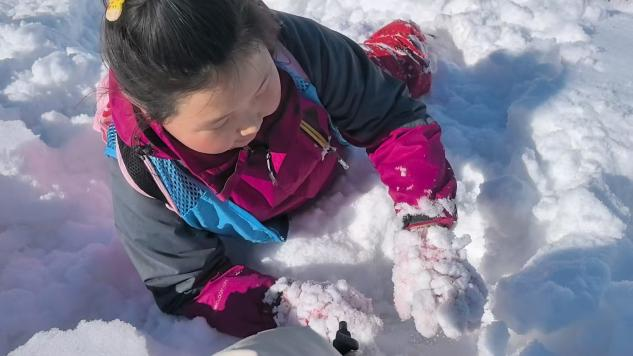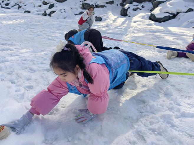 冰雪運(yùn)動會給孩子一次與潔白的雪“親密”接觸的機(jī)會,雪堆像是一把鑰匙,開啟了孩子們的“瘋狂”模式。趣味拔河、打牛、滾雪球、無敵“風(fēng)火輪”……笑聲和加油聲響徹山谷,雪花從松樹上掉落,也不知道是震下來的,還是雪化了。