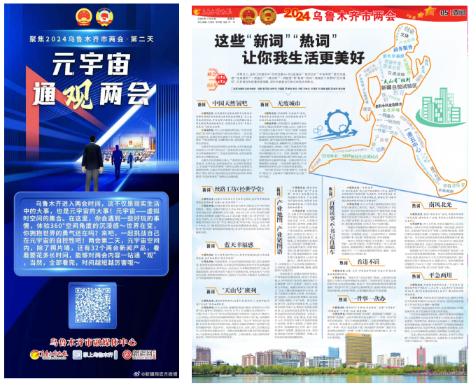 新疆網(wǎng)官方微博發(fā)布《元宇宙通觀兩會(huì)》(2024年1月18日)、烏魯木齊晚報(bào)刊發(fā)烏魯木齊市兩會(huì)報(bào)道(2024年1月19日)