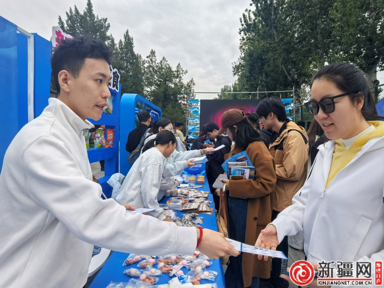 新疆網(wǎng)訊(記者薛玲 梁丹丹)10月12日,北京外國語大學(xué)東校區(qū)秒變“迷你新疆”——伊犁、阿勒泰、克州、克拉瑪依市烏爾禾區(qū)、巴州和碩縣、喀什地區(qū)塔什庫爾干縣六地文旅團隊齊聚新疆文旅市集,直接把雪場、沙漠、非遺、美食……塞進同學(xué)們的背包里,讓京城的學(xué)子瞬間“穿越”到千里之外的絲路雪域。