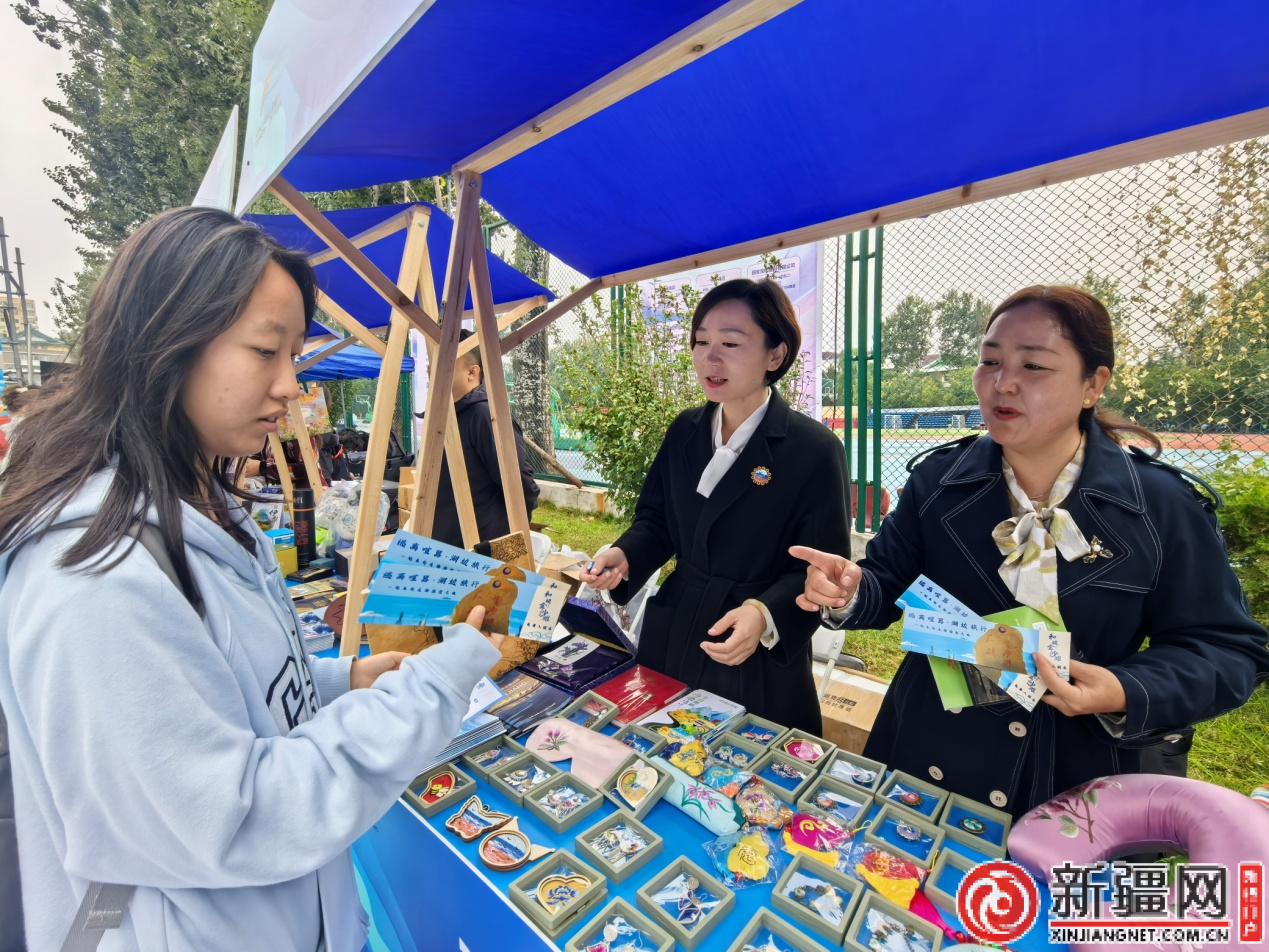 和碩縣文化體育廣播電視和旅游局(文物局)局長喬倩現(xiàn)場推介:“和碩縣金沙灘被稱為‘新疆西海岸’,碧水金沙與豐富水上項目構(gòu)成度假天堂。環(huán)湖自駕可覽紅柳胡楊,馬蘭紅山軍博園見證‘兩彈一星’歷史,更有四季活動如沙漠露營、冬季冰雪游,打造全時全域旅游新體驗。另外我們帶來200多種文創(chuàng)產(chǎn)品,從馬蘭花系列到湖濱主題,讓同學(xué)們把新疆美學(xué)帶回家。”