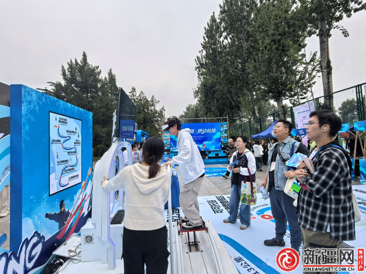 “左手將軍山滑雪票,右手艾德萊斯絲巾,今天不是逛市集,是在撿好物、撿快樂!”北京外國語大學(xué)大一學(xué)生蔡敏舉著剛集滿章的卡片興奮地說。她剛嘗完馕碗酸奶,又?jǐn)D進VR滑雪體驗區(qū),在數(shù)字雪道上過了一把“粉雪癮”。