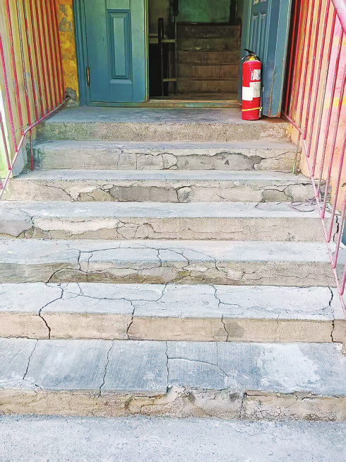 紡織行辦家屬院?jiǎn)卧T前原來的破損樓梯。(社區(qū)供圖)