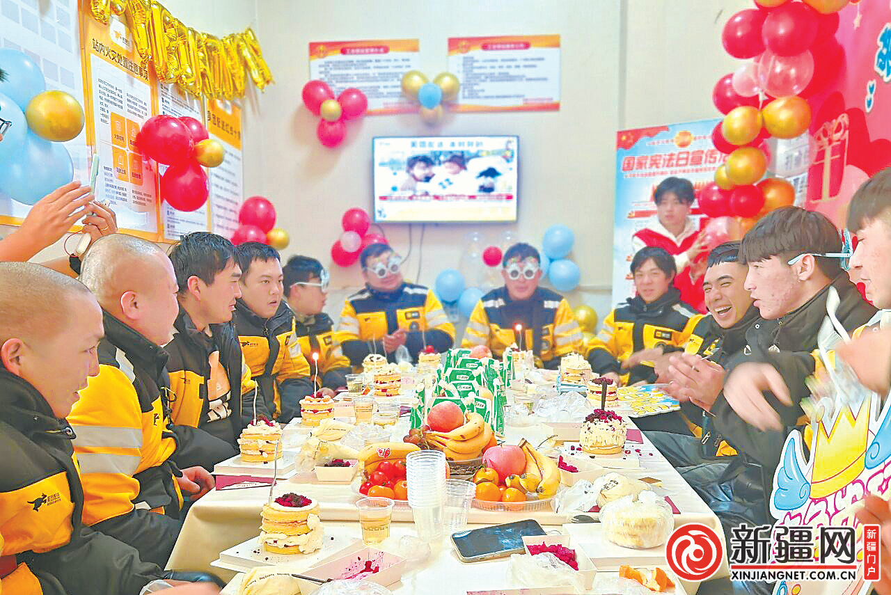 “生日快樂!”大家不約而同地喊出祝福,伊力亞斯江·買買提如孜瞬間眼眶泛紅,不停地說著“謝謝大家”。