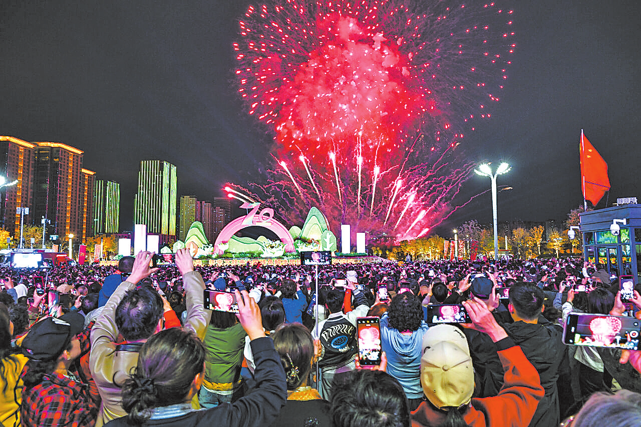 絢爛的煙花在烏魯木齊文化中心上空綻放。(資料圖片)