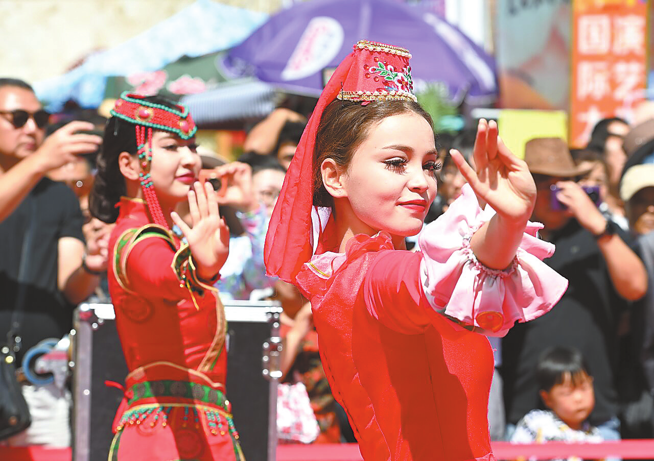 在大巴扎景區(qū),各族群眾載歌載舞歡度節(jié)日。(資料圖片)