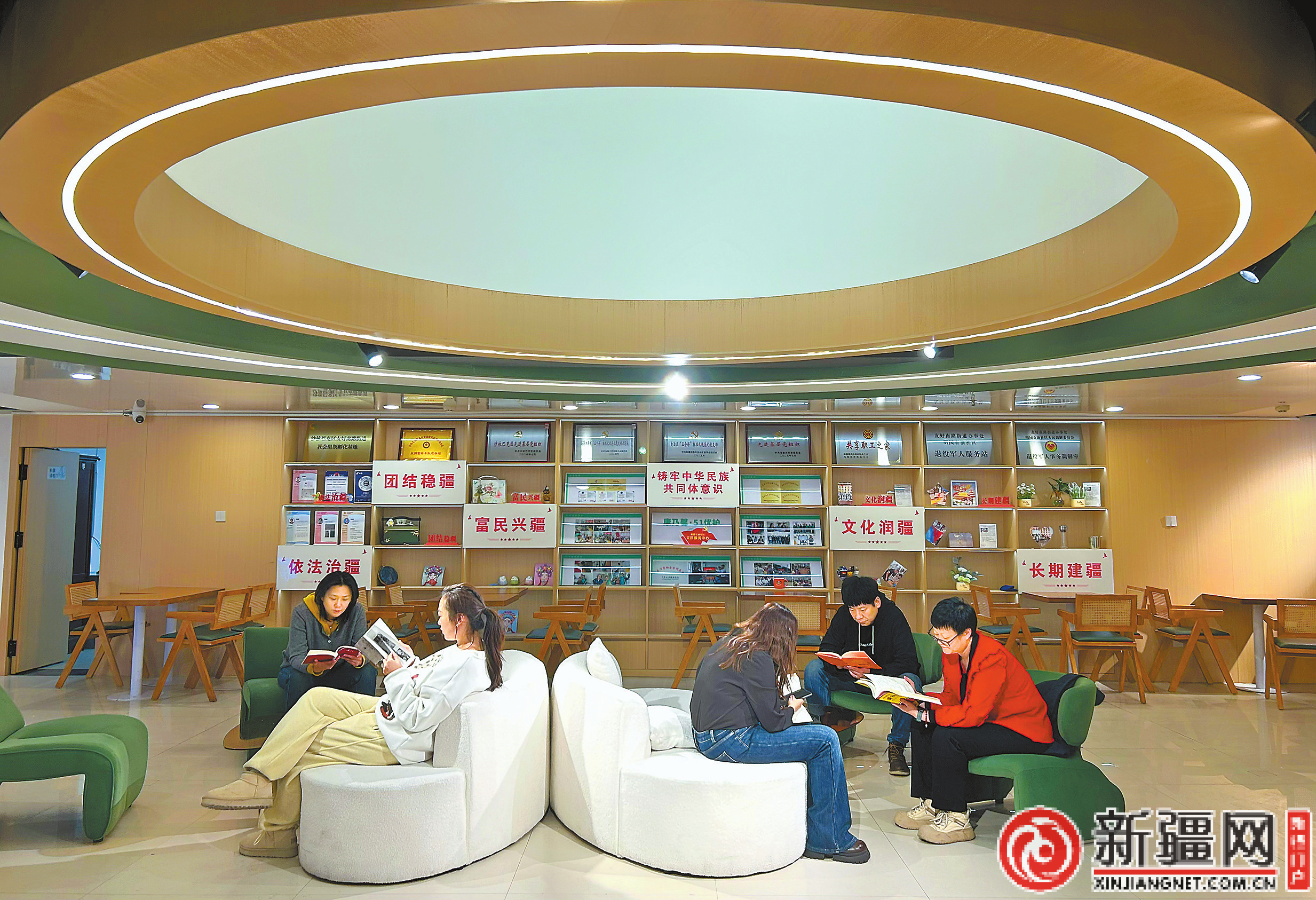 圖為1月4日,轄區(qū)居民在新華“閱享”空間看書(shū)。(記者迪麗娜爾·加力肯攝)