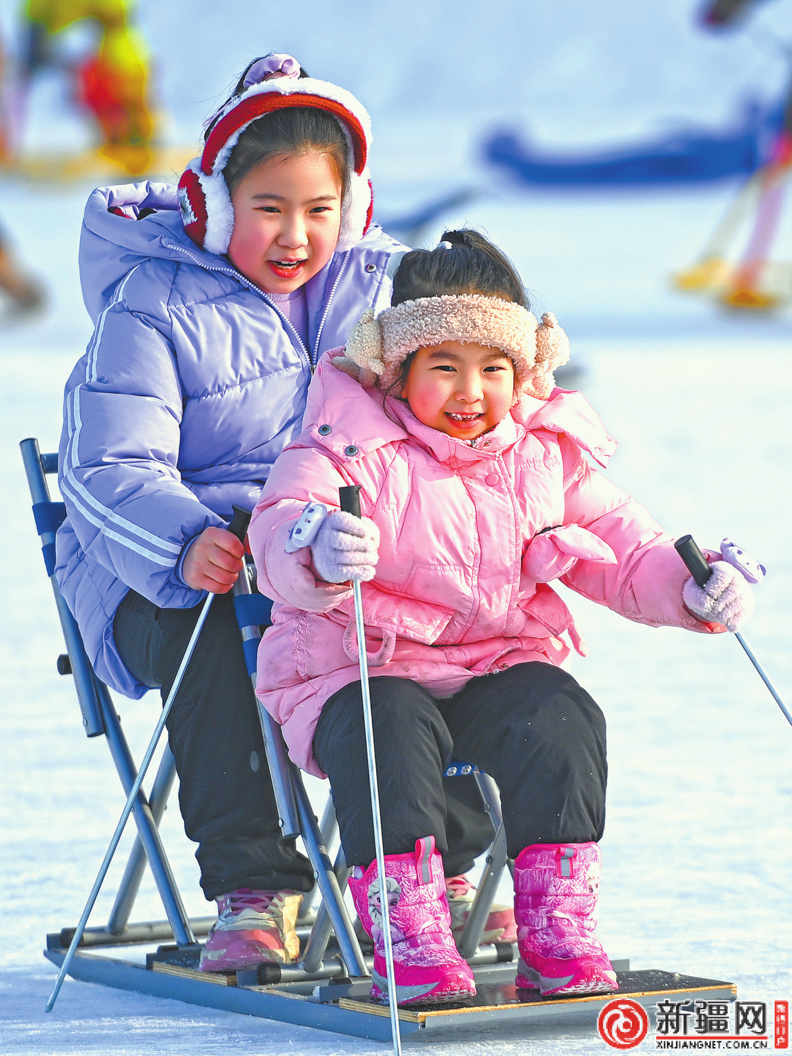 在鯉魚山公園冰雪嘉年華,游客體驗拉雪圈、玩滑冰車。(記者雷婷攝)