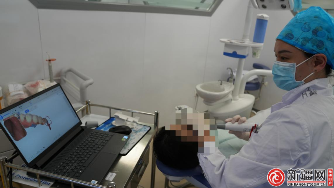在烏魯木齊市口腔醫(yī)院一樓寬敞明亮的口腔全科門診,醫(yī)生通過三維掃描,不到1分鐘就收集到劉女士口腔內(nèi)數(shù)據(jù)完成取模,再通過電腦輔助設(shè)計排牙、調(diào)整,很快就設(shè)計出數(shù)字化義齒模型,該模型將直接發(fā)送給廠家,預計一周左右劉女士就能佩戴全新的義齒。