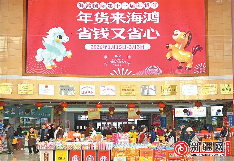 新疆網(wǎng)訊(記者唐紅梅)春節(jié)臨近,海鴻國(guó)際食品物流港第十一屆年貨節(jié)火熱開(kāi)市,各類商品推出優(yōu)惠活動(dòng)供消費(fèi)者采購(gòu)。