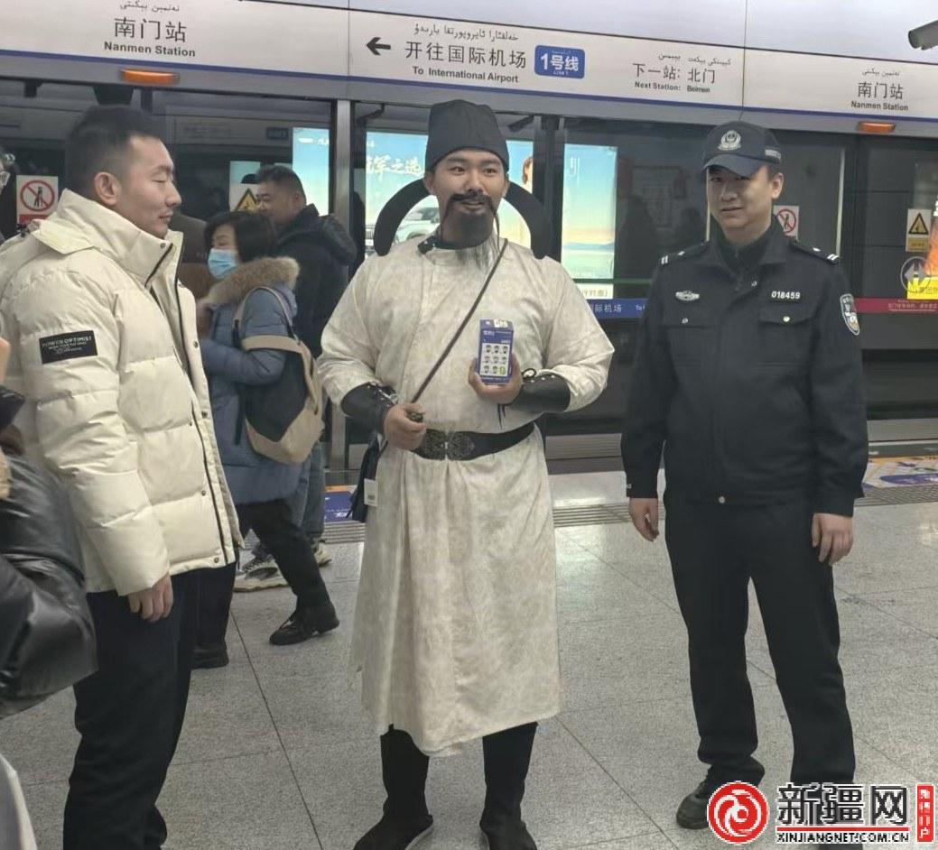 當日17時,新疆圖書館聯(lián)合烏魯木齊城市軌道集團有限公司在地鐵南門站推出了一場融合傳統(tǒng)文化與現(xiàn)代安全宣傳的公益活動。警方主動加入活動,創(chuàng)新形式,把反詐口訣與乘車安全提示嵌進古詩,讓乘客在沉浸式體驗中筑牢防范意識。