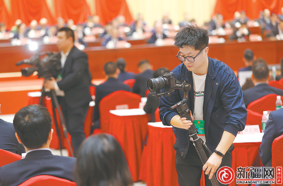 1月22日,在烏魯木齊市第十七屆人民代表大會(huì)第六次會(huì)議上,烏魯木齊晚報(bào)全媒體記者周騰在拍攝。