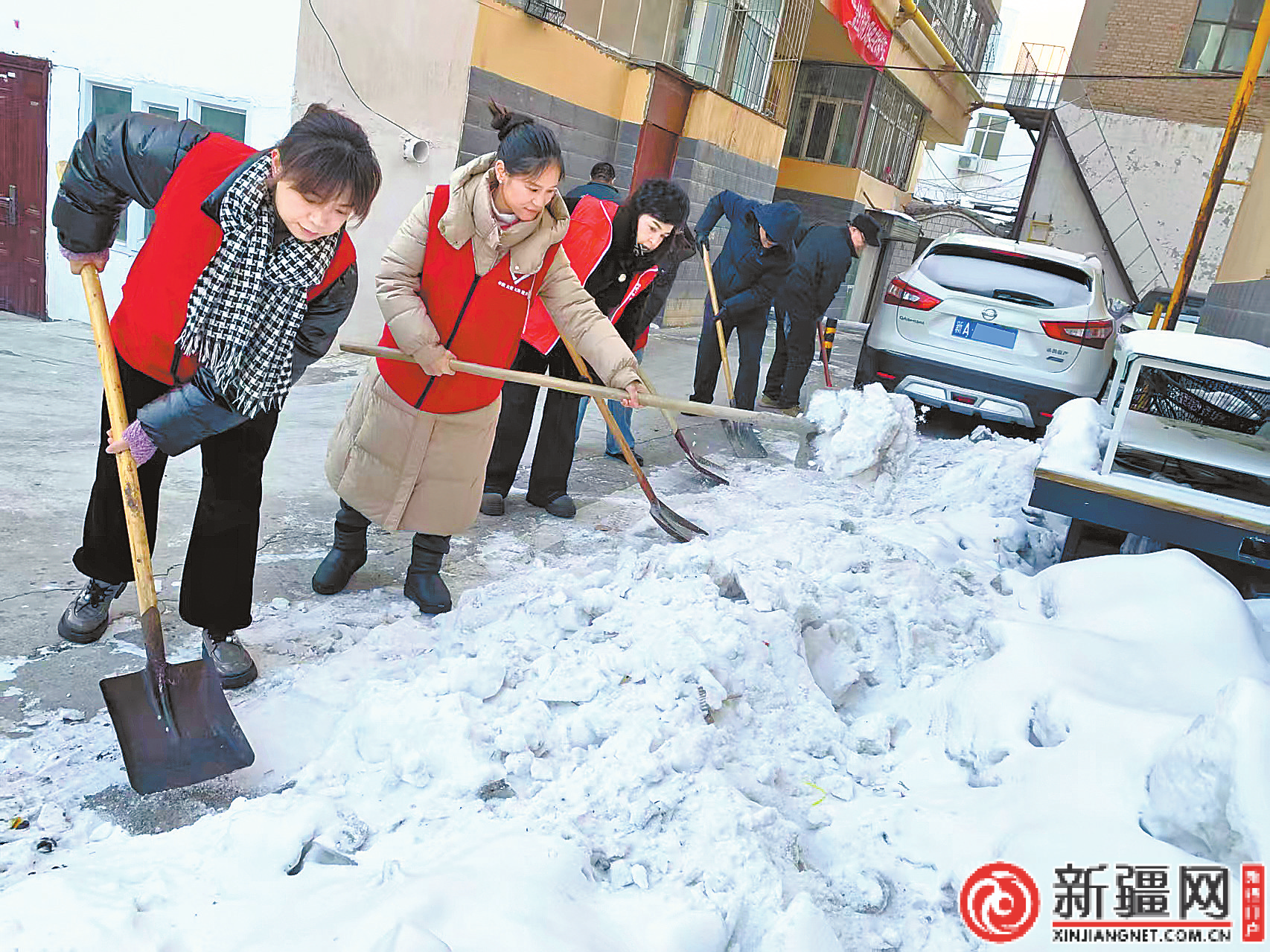 米東區(qū)米東南路街道眾和社區(qū)里,黨員與志愿者化身“及時(shí)雨”,在“親鄰黨建·潔凈之城”掃冰除雪活動中,為居民特別是高齡老人清出安心路,讓熾熱的“志愿紅”成為冰雪中溫暖的迎春序曲。