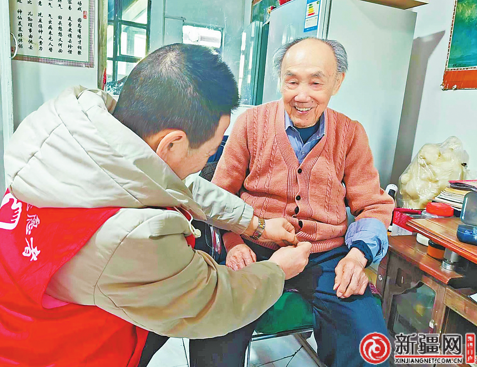 水磨溝區(qū)新民路街道新民社區(qū)的志愿者們,節(jié)前叩響老人們的家門。他們不僅送上問(wèn)候,更愿坐下來(lái),聽(tīng)抗美援朝老兵唐開(kāi)太講述往事,叮囑田存蘭老人注意取暖安全。